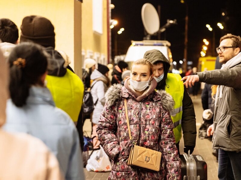 Пассажиров выпускали из поезда поэтапно: волонтёры несли багаж, помогали людям идти. Чемоданов почти ни у кого не было, все брали только самое необходимое.