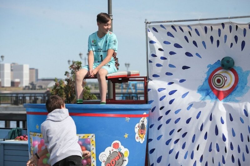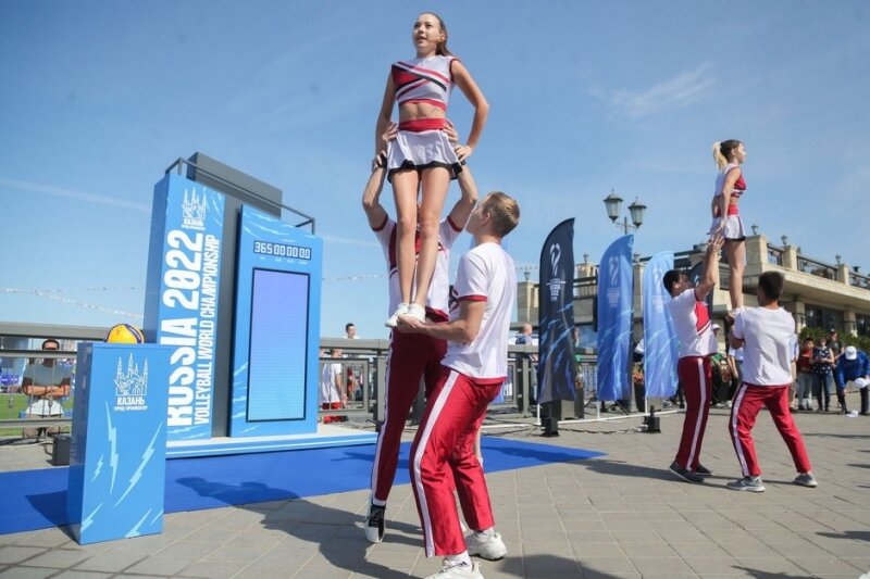 После того, как был дан запуск обратного отсчета, началась спортивно-массовая программа для всех желающих. Гости города могли наблюдать за соревнованиями между лучшими школьными волейбольными командами Казани. От каждого района принимали участие по одной команде, также были участники и не из столицы. Например, спортсмены Зеленодольска, которые более чем достойно выступали на протяжении турнира.