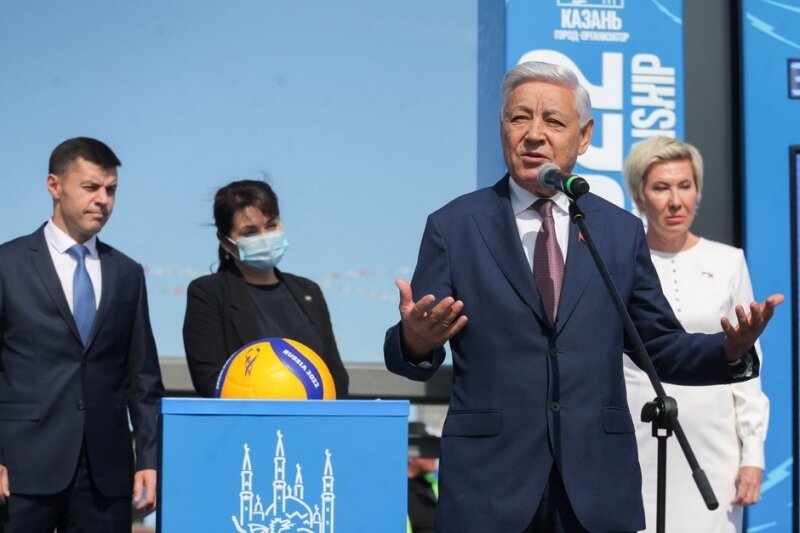 Официальная часть началась с приветственного слова председателя Госсовета РТ и президента Федерации волейбола РТ Фарида Мухаметшина